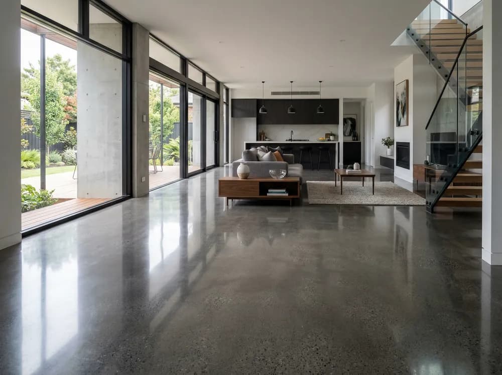 Professional mechanically polished concrete typically ranges from $80 to $150 per square metre. The price depends on the condition of your existing slab, the level of aggregate exposure desired, and the final gloss finish. Grind and seal options are generally cheaper, starting around $50 to $80 per square metre.